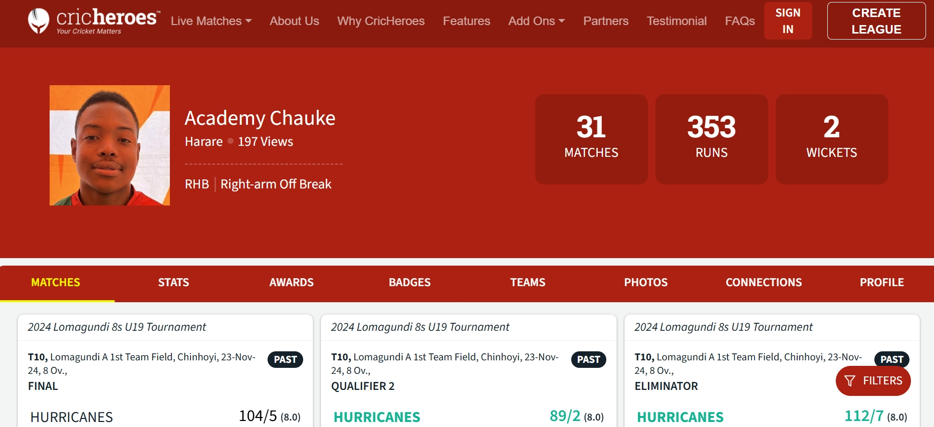 I am a right handed top order batsman and spin bowler. Check out my career stats